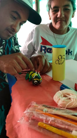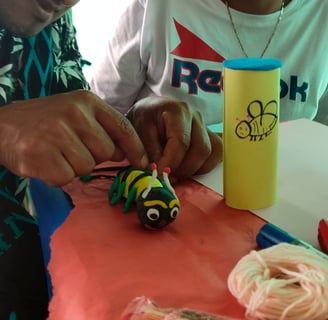 A los participantes se les entrega plastilina de diferentes colores, papel craft, papeles de colores, cinta, ega, bombas, cintas de colores. Se les da un tiempo de 30 minutos para realizar la maqueta en equipo. De esta manera, lo que solo era una idea toma forma: se crea el empaque, se piensan las dimensiones, el color del producto, la publicidad, etc.