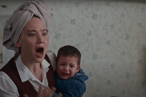 Aquí vemos a Joy Mangano sumamente estresada con los deberes del hogar, y alcanzada en deudas