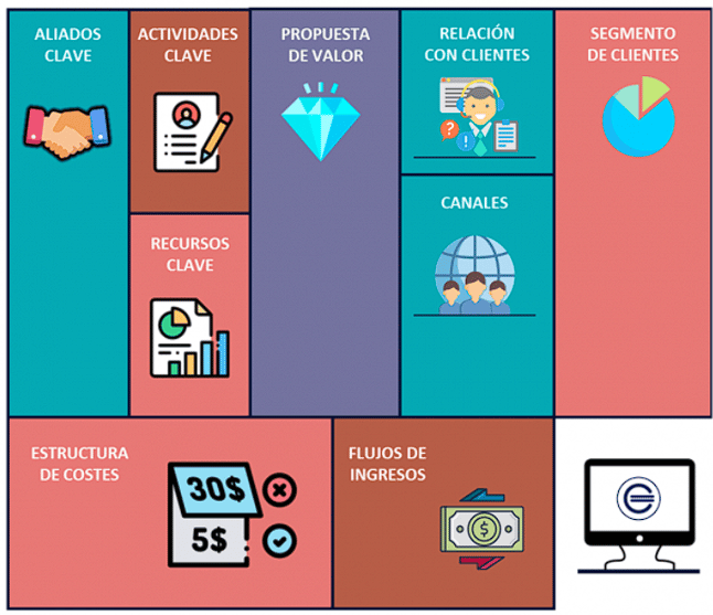 Este es un esquema que guía la generación de ideas de negocios. Se llena de la siguiente manera: