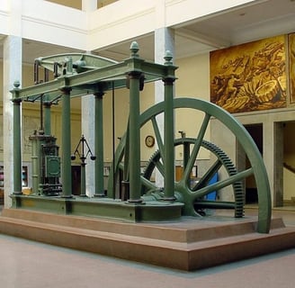 Esta máquina se utilizó ampliamente en la minería, la manufactura y el transporte transformando radicalmente la producción y el movimiento de bienes. Estas máquinas de vapor reguladas por el condensador se utilizaron para trenes y barcos de vapor (a partir de George Stephenson, 1829 y su famosa Rocket), lo que provocó un auge de la industria minera y la metalurgia.