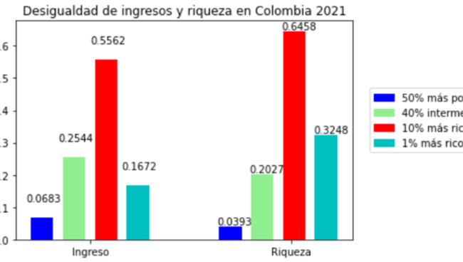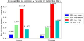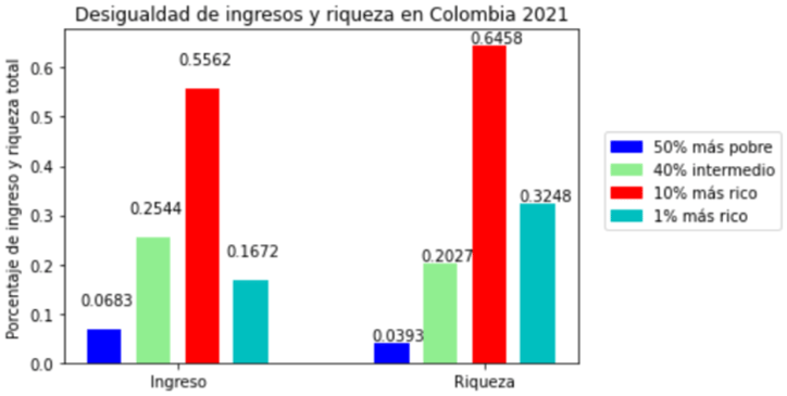 ax.set_title('Desigualdad de ingresos y riqueza en Colombia 2021')