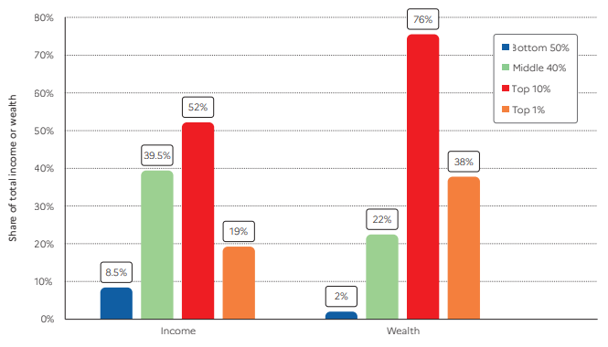 Gráfica 1. Desigualdad mundial de ingreso y de riqueza, 2021