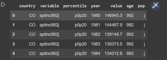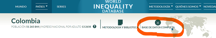 En esta entrada vamos a replicar el gráfico 1 del “World Inequality Report 2022” para el caso de Colombia. Lo primero que hay que hacer es descargar el archivo que queremos, y subirlo a nuestro github. Para ello, vamos al perfil de Colombia en WID y damos a descargar base de datos completa